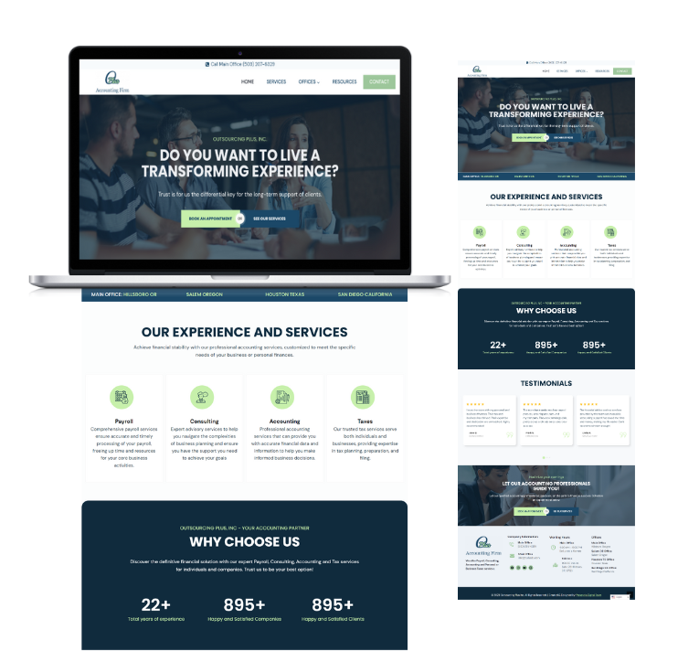 Built a professional website for an Oregon-based accounting firm to showcase their services and help more people find them online. The site includes a booking system that lets clients choose their preferred office location, with appointment notifications automatically sent to the right branch for a seamless experience.